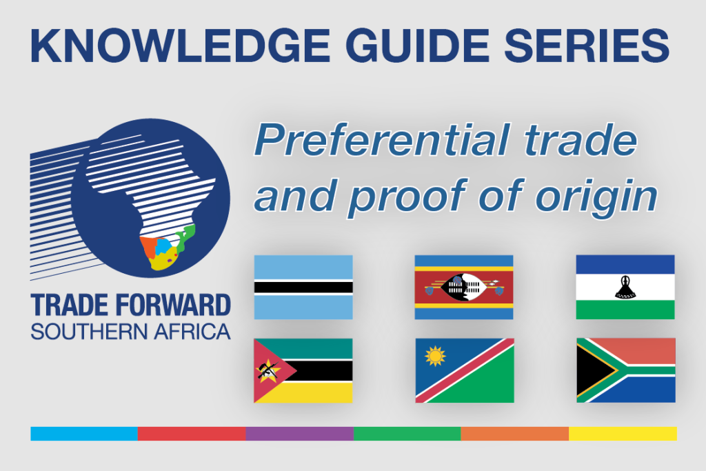 ‘Preferential trade and proof of origin’ focuses on the UK-SACU+M Economic Partnership Agreement (EPA) and its key components and benefits to businesses, and explains the concept of ‘preferential origin’ in the EPA, and why a determination and proof of origin status is a critical requirement in order to benefit from the trade preferences offered under the agreement.